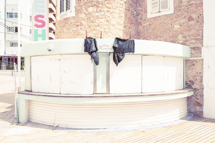 Die Fotoreihe entstand im August 2020, eigentlich der Höhepunkt einer jeden Saison auf Ibiza. Doch dieses mal war es anders. Schon die Ankunft am Flughafen, dessen Leere und fehlende Quirligkeit. Der verlassene Hafen, wo sonst die Schönen und Reichen Ihre Yachten aneinanderreihen. Die Clubs, vor einem Jahr noch Kathedralen hedonistischer Feierkultur, stehen verweist in der Sommersonne, aus den Asphaltritzen wächst das Gras und auf den Tanzflächen türmt sich das trockene Seegras.